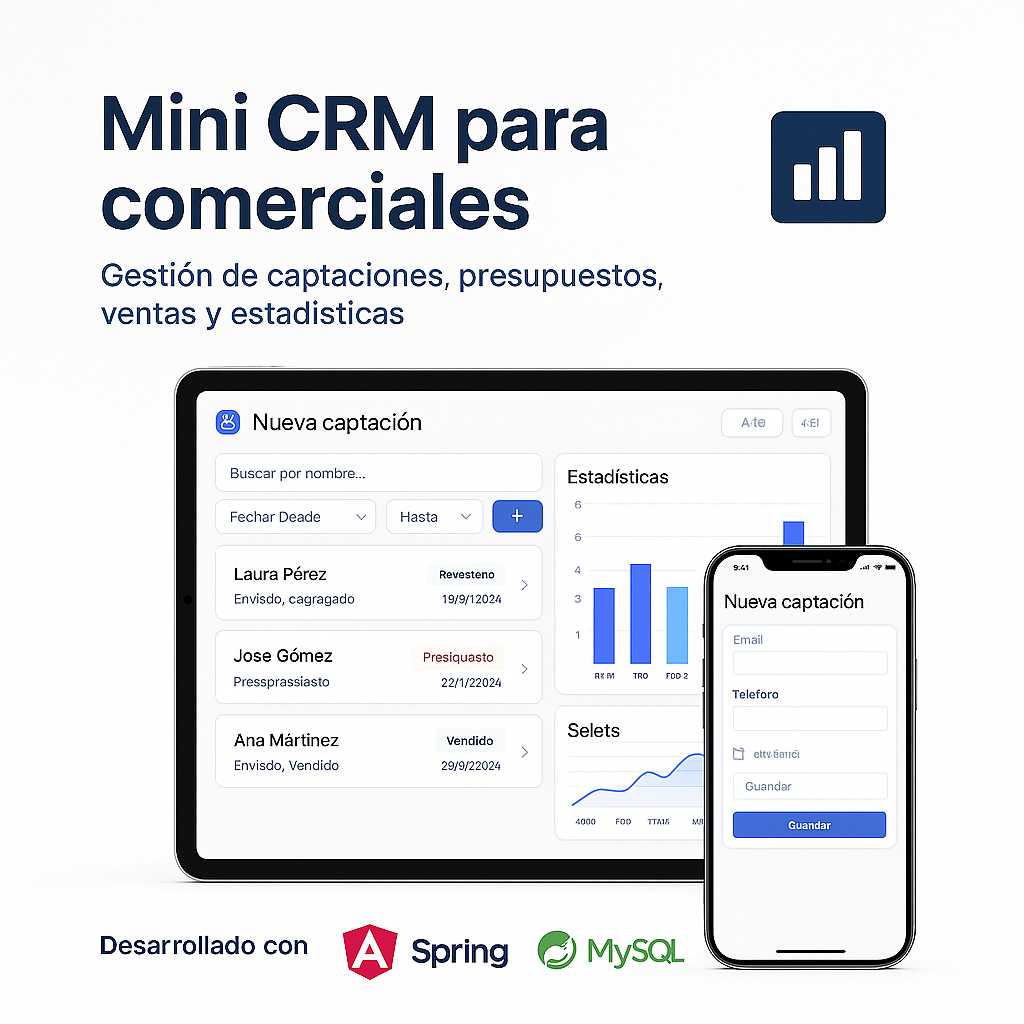 Landing page captación:FRONT:Angular, Angular Material, BACK: Spring boot, DB: MySQL