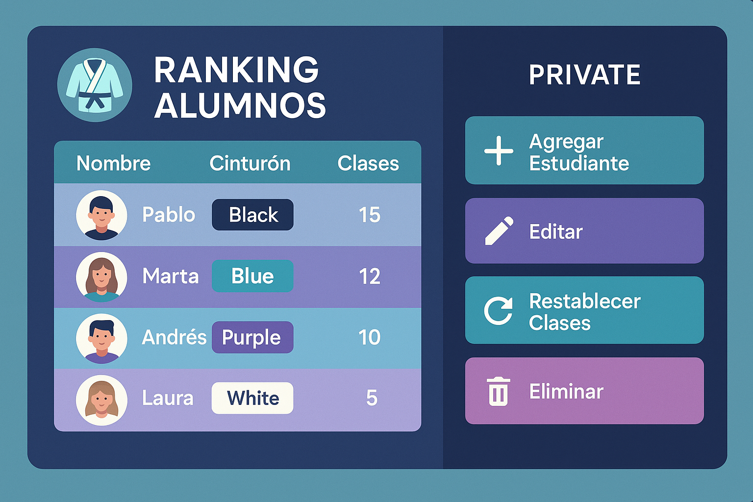 Ranking de clases. FRONT: Angular, Angular Material, BACK: PHP, DB: MySQL